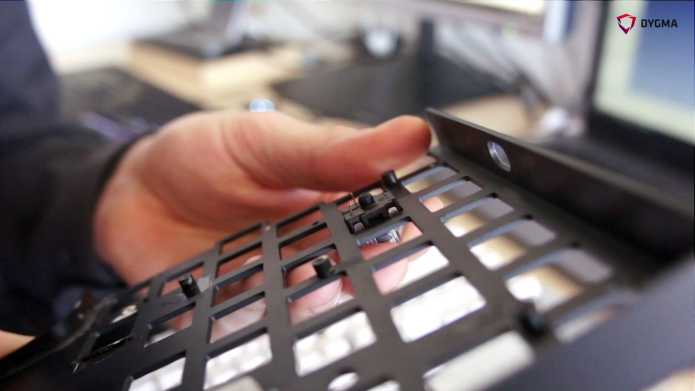 The Raise is assembled in an automated factory. Initially, the screws were found at the top of the keyboard but we decided to change this. Now, all the screws that are used to assemble the keyboard are found at the bottom using threaded inserts.