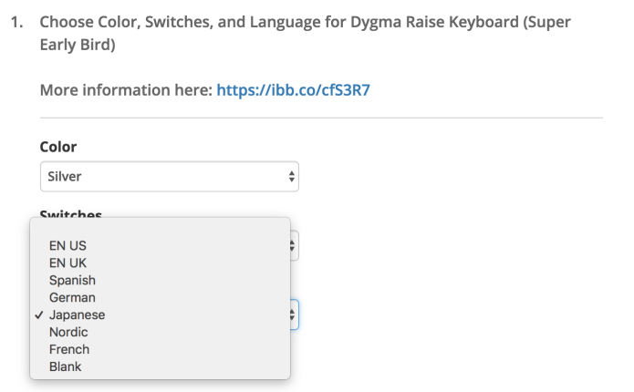 In the new site, you will be able to pick your switches, keycaps, and language, and buy your customized Raise keyboard from there!