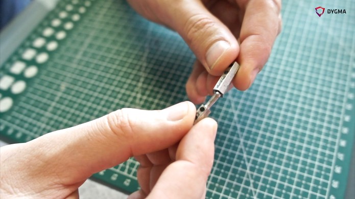 For the second prototype we used a metal joint. Each side of the keyboard had the joint soldered. One had the male interface, and the other had the female. The joint piece is made of CNC aluminium which looked well suited for the aluminium body of Raise.